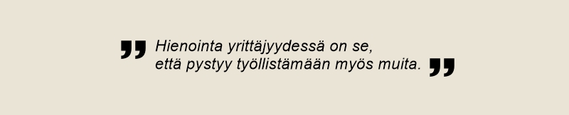 – Hienointa yrittäjyydessä on se, että pystyy työllistämään myös muita. Tämä korostuu etenkin pikkupaikkakunnilla.