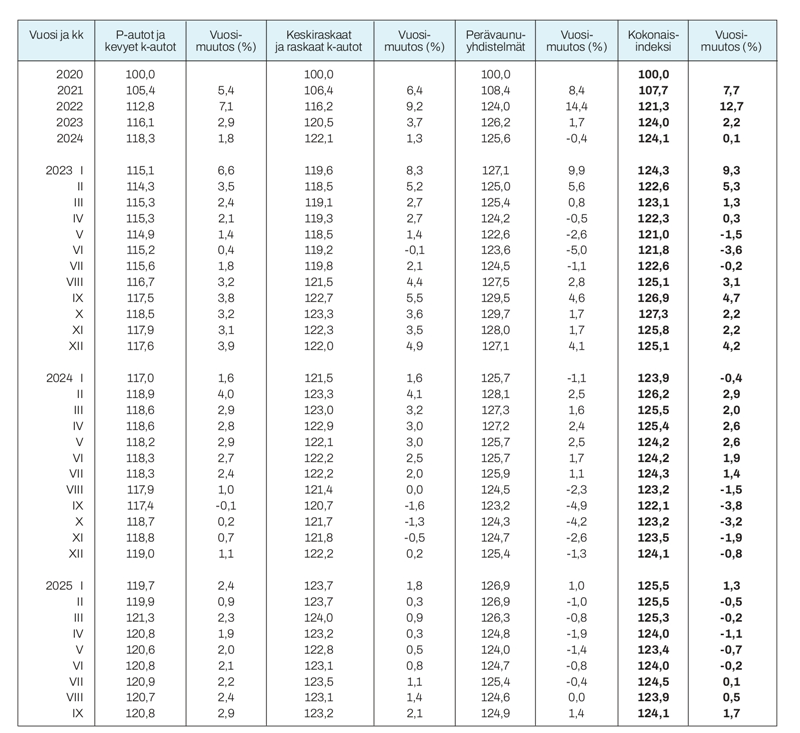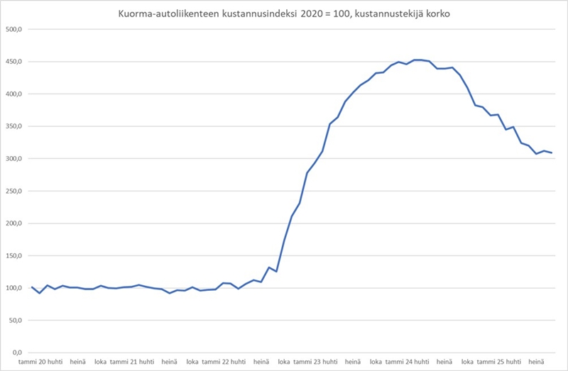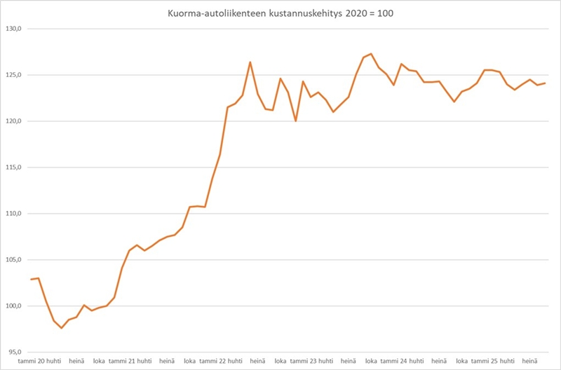 Syyskuussa 2025 luvanvaraisen tavaraliikenteen kustannukset olivat 24,1 prosenttia vuoden 2020 keskiarvoa korkeammalla.