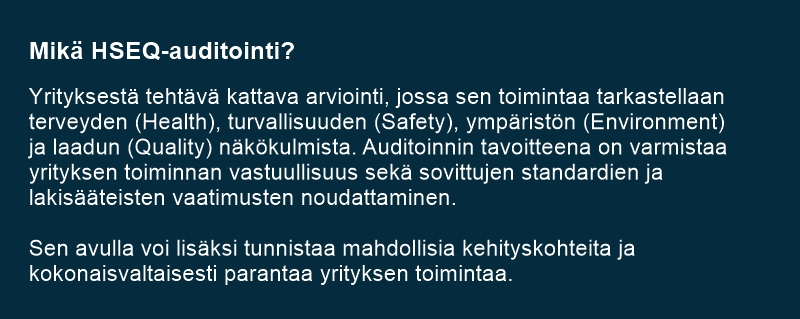 Itse asiaan johdatti Kiwa Sertifiointi Oy:n pääarvioija Juha Karlsson, jokaavasi HSEQ-klusterin arviointikäytäntöjä ja kertoi, mitä arviointi pitää sisällään, millaisia asioita arvioinnissa tarkastellaan, ja miten siihen voi valmistautua. Hän kuvaili myös arviointipäivän kulkua sekä arvioinnin tuomia hyötyjä niin tilaajan kuin toimittajankin näkökulmasta. Kattava esitys kirvoitti niin kysymyksiä kuin keskustelua.