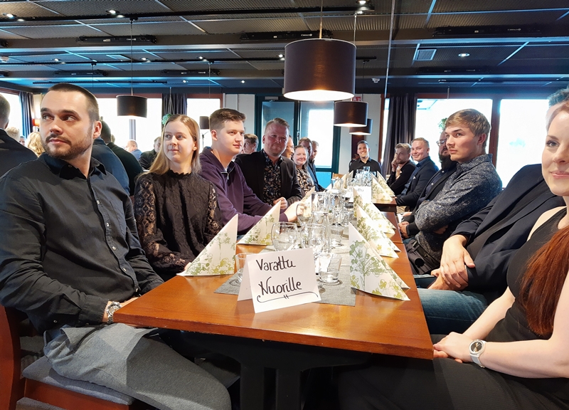 SKAL Puutavaraseminaariin osallistui myös ilahduttavan suuri joukko nuoria jäsenyrittäjiä ja yritysten tulevaa polvea, jotka päivän päätteeksi kokoontuivat omaan illallispöytäänsä verkostoitumaan ja viettämään iltaa.