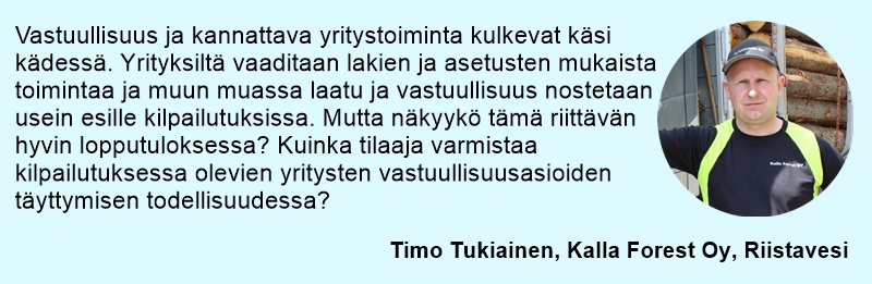 Asiakkaan näkemyksiä keskusteluun toi laadun kehittämisestä Stora Enson Suomen puunhankinnassa vastaava laatupäällikkö Niko Hannula, joka huomautti, että toimintaympäristön kiristyessä laadun ja auditointien merkitys kasvaa ja kuljetuksiin kohdistuu uusia odotuksia.