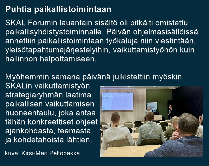 Aktiivinen ja vireä Forssan Seudun Ammattiautoilijat ry palkittiin vuoden 2025 SKAL Paikallisyhdistyksenä. Jo vuonna 1937 perustettu yhdistys panostaa määrätietoisesti jäsenhankintaan, ja on saanut neljän vuoden aikana peräti 11 uutta jäsentä.