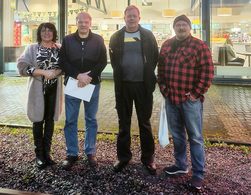Elintarvikealan Kuljetusyrittäjien Hämeen alueosaston toimikunta kokoontui lokakuun alussa Iittalan Shell HelmiSimpukassa uuden puheenjohtajan Antero Mansoniemen (Tampere) otettua alueosastossa ohjakset tämän vuoden alussa Aaltosen Mikolta (Tammela). Toimikunta valmisteli tulevan, Valkeakoskella 18.10.2025 pidettävän syyskokouksen asioita. Alueosaston jäsenet ovat Kanta- ja Päijät-Hämeen sekä Pirkanmaan alueelta. Kuvassa oikealta puheenjohtaja Antero Mansoniemi, toimikunnan jäsenet Juha Kupari ja Hannu Mäkelä, sekä sihteeri Pia Vuori.