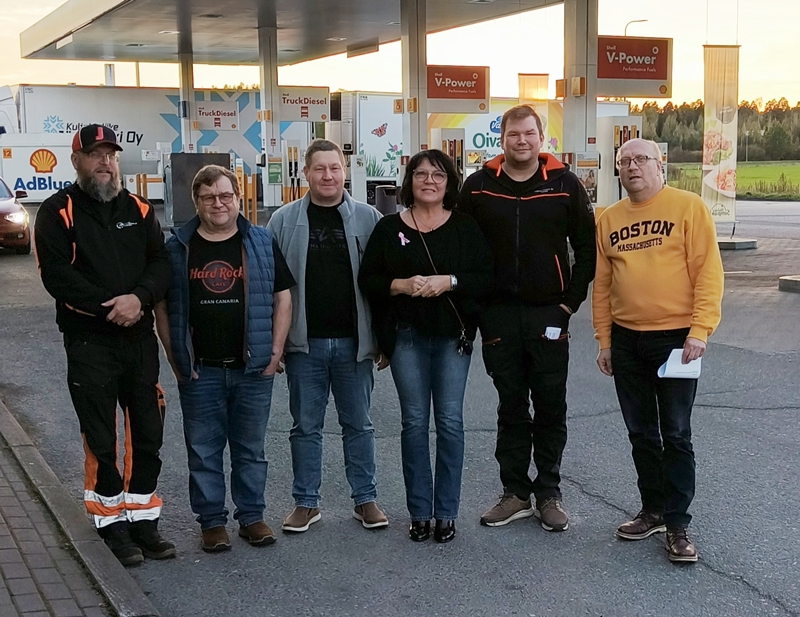 Metsäalan Kuljetusyrittäjien Sisä-Suomen jaoston johtoryhmä kokoontui 25.9.2025 Iittalan Shell HelmiSimpukassa. Johtoryhmä valmisteli tulevan syyskokouksen asioita, kuten jaoston nimenmuutosasiaa. Nimenvaihdos tuli pohdittavaksi, kun emojärjestö Metsäalan Kuljetusyrittäjät ry muutti nimensä SKAL Metsä ry:ksi. Kuvassa vasemmalta puheenjohtaja Seppo Toivonen, varapuheenjohtaja Jari Kangasaho, Jari Lehmusvuori, sihteeri Pia Vuori, Pasi Pesonen ja Osmo Haikka. Shell-asemat muuttuvat tämän vuoden loppuun mennessä St1-asemiksi. HelmiSimpukka Ravintolat jatkavat toimintaansa.