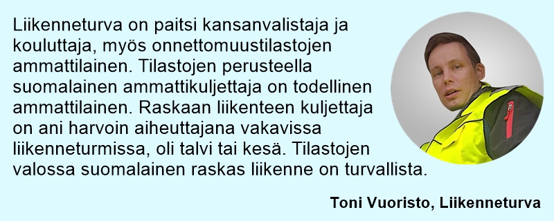 – Kuorma on varmistettava aina huolella, mutta liukkaalla ja arvaamattomalla kelillä kuormatilassa liikkuva kuorma kertaa mahdolliset virheet, Vuoristo sanoo.