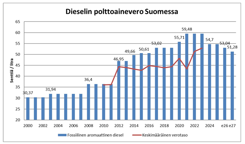 Lokakuun alussa eduskunnan käsiteltävänä olleen lakiesityksessä valmisteveron alennus olisi yhteensä keskimäärin 2,7 senttiä litralta ja dieselille sekä sitä korvaaville polttoaineille yhteensä keskimäärin 2,4 senttiä litralta.