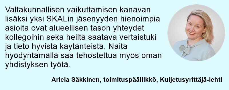Suomen tiestön kunto puhuttaa ympäri vuoden ja onkin yksi SKALin valtakunnallisen vaikuttamistyön terävimpiä kärkiä. Asioihin voi ja kannattaa kuitenkin vaikuttaa myös alueellisella ja paikallisella tasolla omien yhdistysten kautta. Keräsimme tähän alueyhdistyksiltämme vinkkejä vaikuttamistyöhön.
